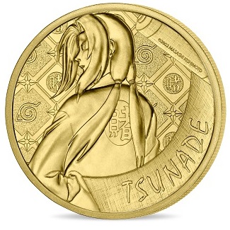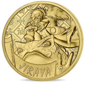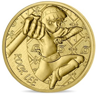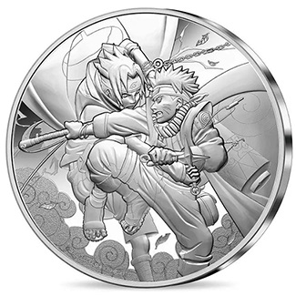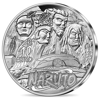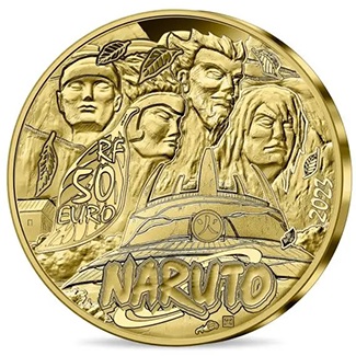 La monnaie de 10€ en argent est vendue à 89€. Elle présente en volume la couverture du tome n° 20 du manga Naruto. Le fond de la monnaie reprend des motifs de nuages et d’éclairs, rappelant les éléments principaux des techniques signatures de Naruto et Sasuke. De son côté, la pièce de 50€, en or fin, est vendue à 749€. On peut y voir l’équipe 7 et Kakashi.