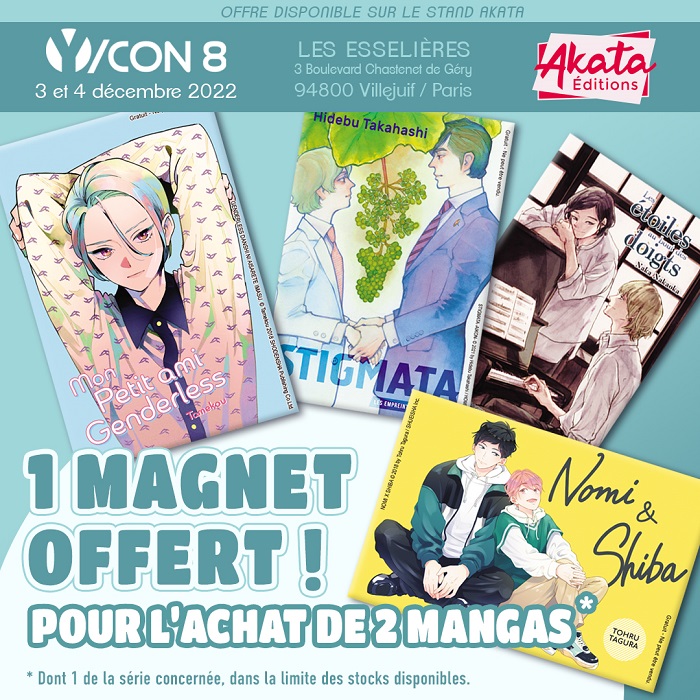 Il y a quelques jours, les éditions Akata ont annoncé la venue de la mangaka Tamekou à la Y/Con et il est à présent possible de découvrir son programme et les goodies de l’éditeur.