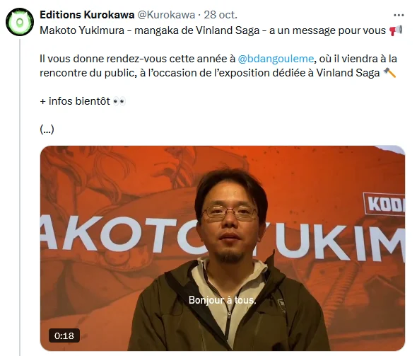 Alors que la 52ème édition du Festival de la BD d’Angoulême accueillera une exposition dédiée à Vinland Saga, les éditions Kurokawa annoncent la venue du mangaka Makoto Yukimura !