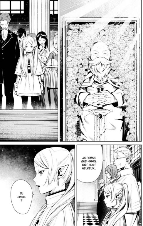 A première vue, Frieren pourrait ressembler à de nombreuses séries de Fantasy, mais sa particularité, celle qui la rend remarquable, se perçoit dès les premières pages. Là où beaucoup narrent l’histoire d’un groupe ayant pour mission d’abattre le mal, celle-ci débute alors que le roi-démon vient d’être vaincu.